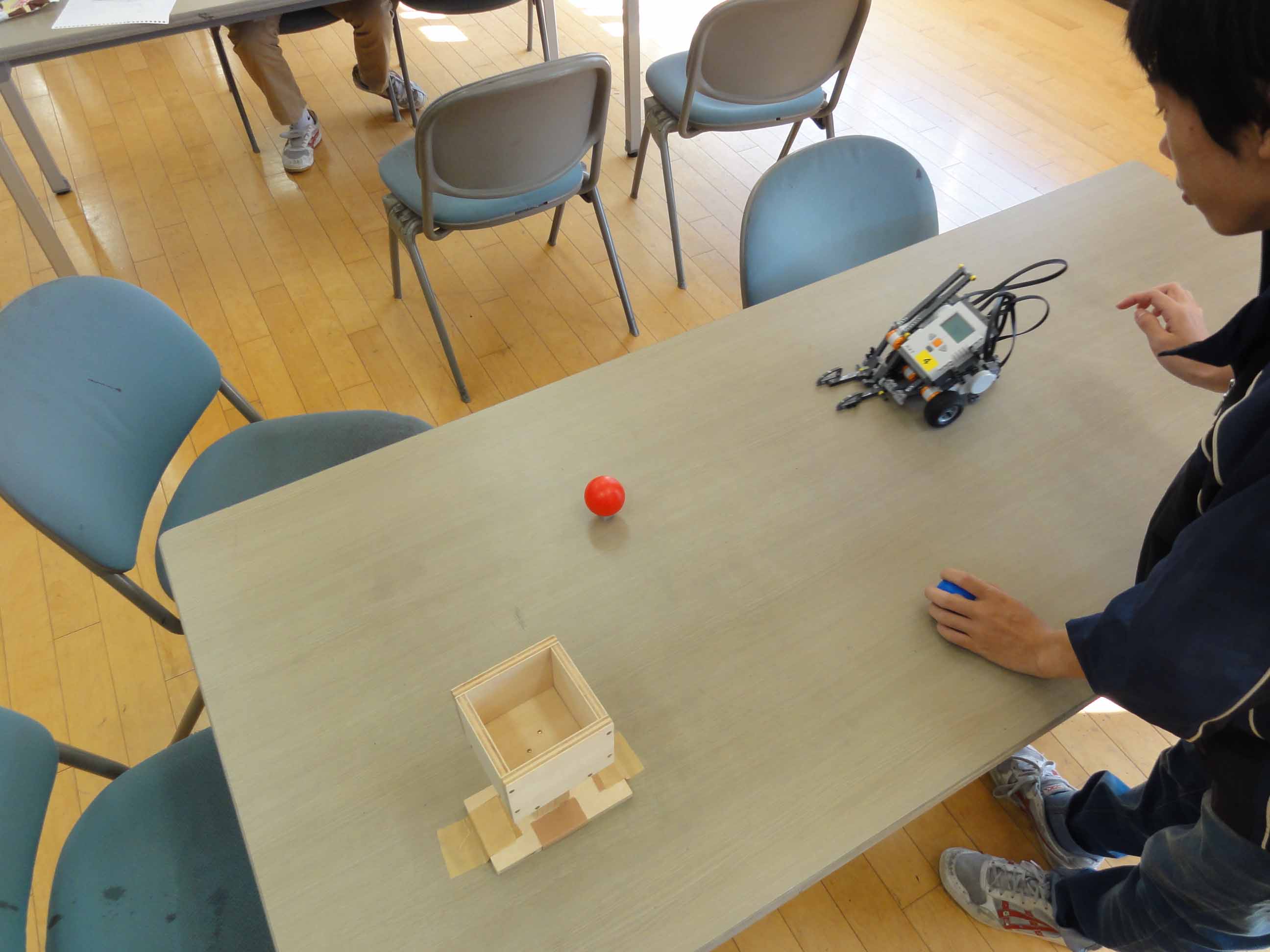 後半は簡単な課題(ライントレース、台を乗り越える、バスケットにボールを入れるなど)に取り組んでいます。