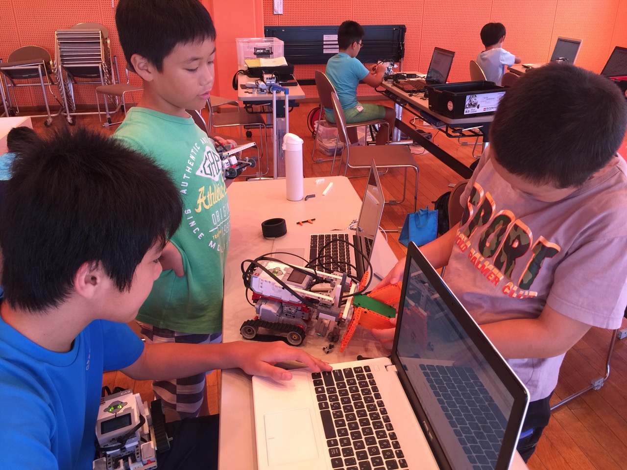主な活動は、NPO法人授業の中核である「新発田市ロボコン教室」事業です。毎週土曜日の午前9時から午後4時まで(年間45-50回)ロボットを使ったプログラミング教育を実施しています。