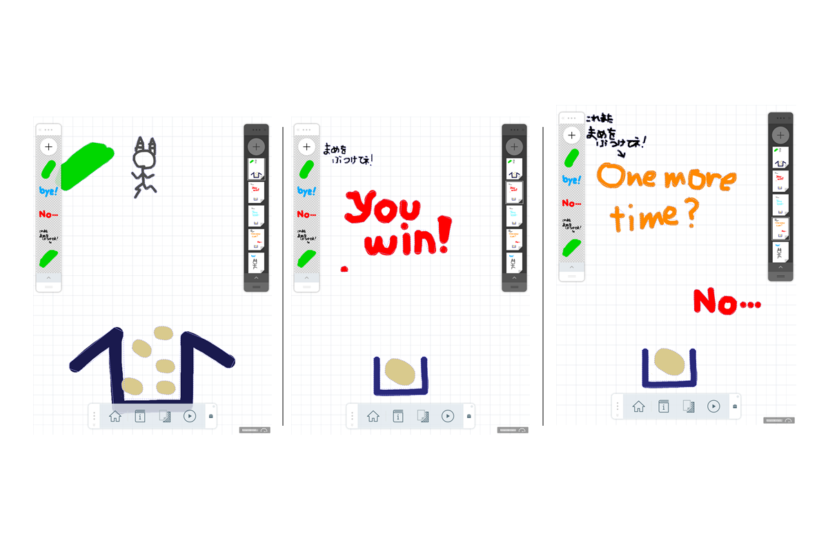 正課クラブ時間内での実施であるため、いつもより短い50分での実施となったが、参加者全員がさまざまなアレンジを施した豆まきゲームを完成させることができた。特に多かったアレンジは「鬼を増やす」「豆を増やす」「鬼の動きを調整する」「ユーザーインターフェースを工夫する」の4点だった。