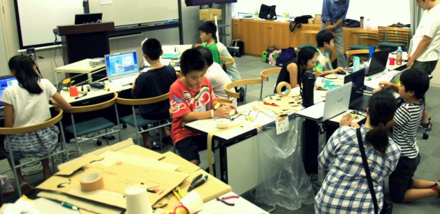 2014年8月17日に三重県津市で開催した子ども向けプログラミングワークショップの様子。