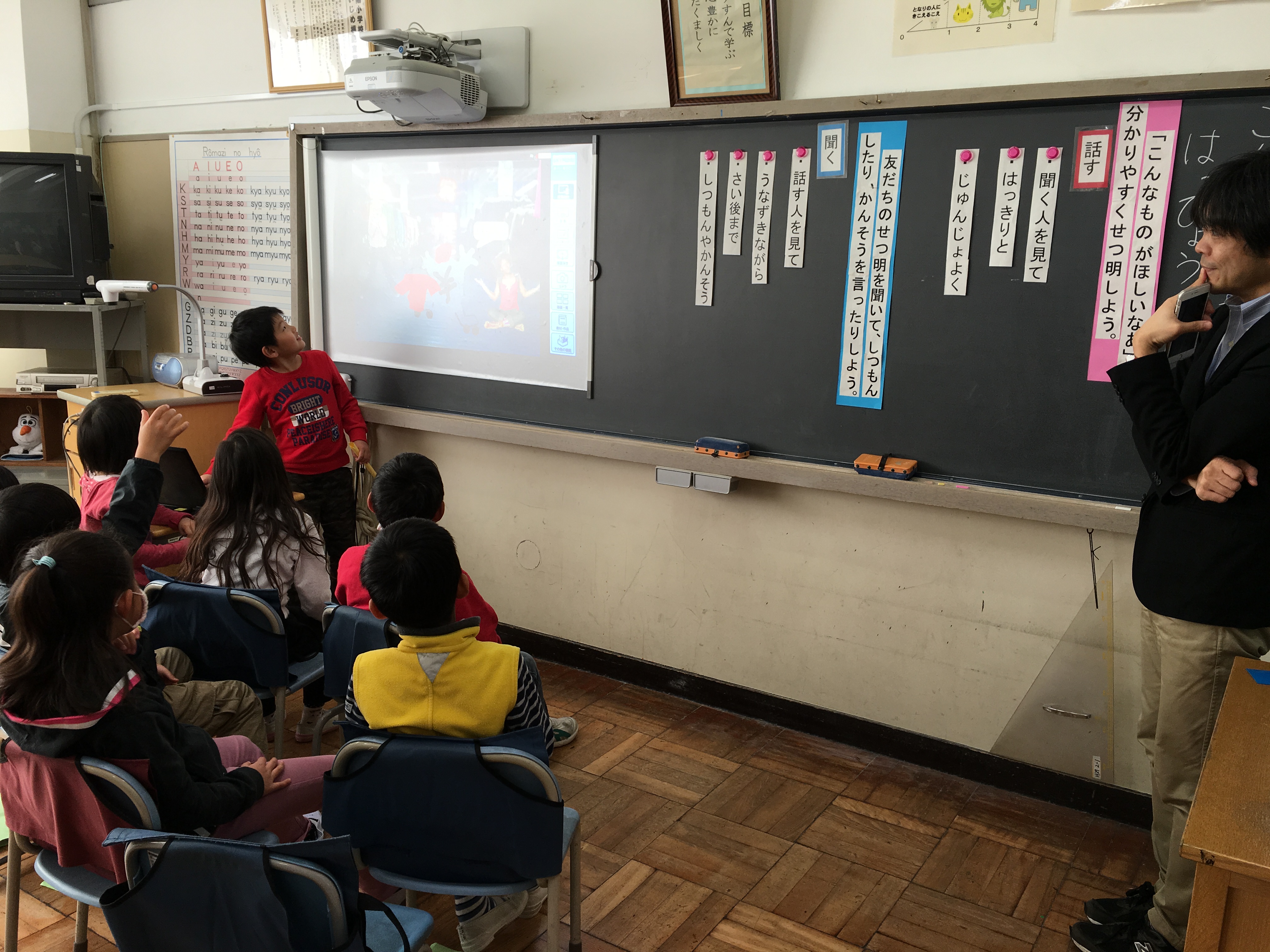 「こんなものがほしいなあ」は児童一人一人があったらいいなと思うものを楽しく自由に想像できる内容である。自分で考えた『こんなものがほしいな』について、話す順序を考えながら、聞き手に分かりやすいように話す力をつけることをねらいとしています。また、大事なことを落とさずに聞き、アドバイスをしたり、興味をもって質問をしたりして話し合う力・コミュニケーション能力をつけさせたいと考えました。