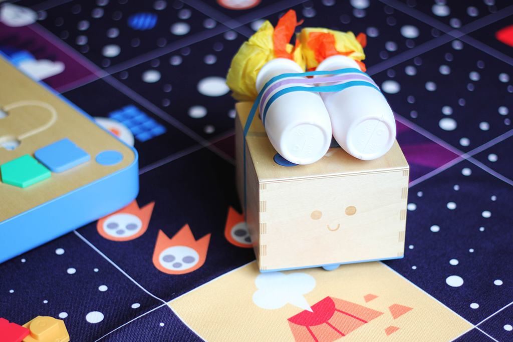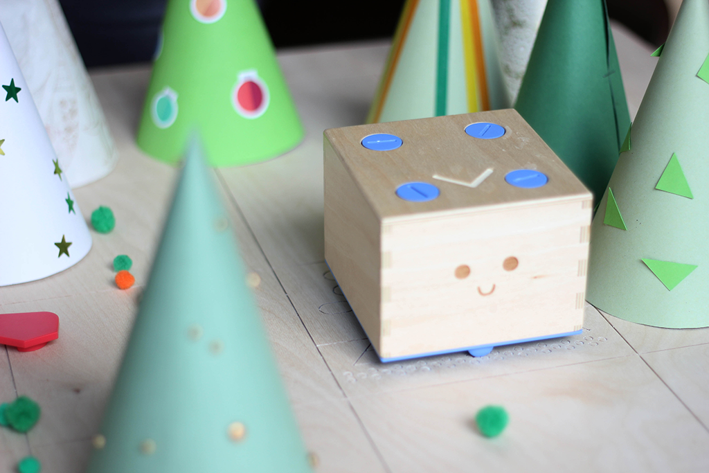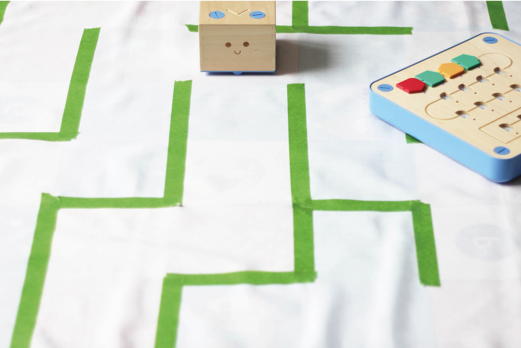 モーターが内蔵された木製のロボット。子どもたちは、キュベットにプログラミングして動きの指示を与えます。シンプルな四角い形で、手作りの工作を組み合わせてオリジナルキュベットにアレンジすることも。