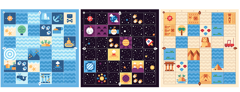 絵や模様が描かれた「ワールドマップ」の上でキュベットを動かせば、キュベットがマップの上を冒険したり旅をしたりする物語づくりを楽しみながらプログラムづくりに取り組むことが出来ます。街や深海、宇宙などストーリーが膨らむマップが用意されています。