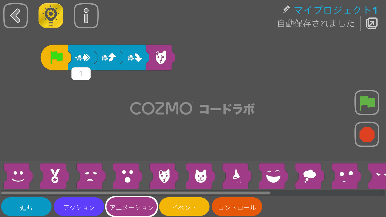 デバイスの画面上でブロックを繋げる簡単なプログラミングで、あなたの思い描いたストーリーを演じてくれます。